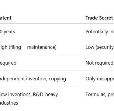 Patents and trade secrets are like two very different shields for protecting an invention. One is public + time-limited (patents), the other is private + potentially endless (trade secrets). Choosing between them isn’t just a legal decision—it’s a strategy call based on your invention, market, and business goals. Here’s a structured draft you could turn into a blog post for your audience: