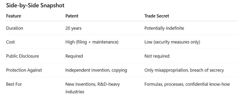 Often, the smartest companies use a hybrid approach—patenting core innovations while keeping other valuable know-how secret.